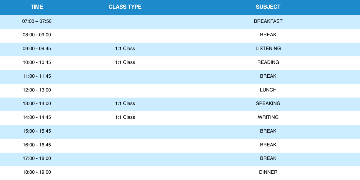 It is a course designed for students who would like to enjoy a less hectic schedule while studying English. With a more relaxed pace of learning and flexible class time, students can study at their own pace and convenience. Moreover, this course enables students with a busy lifestyle to prioritize other commitments without compromising their English language learning.